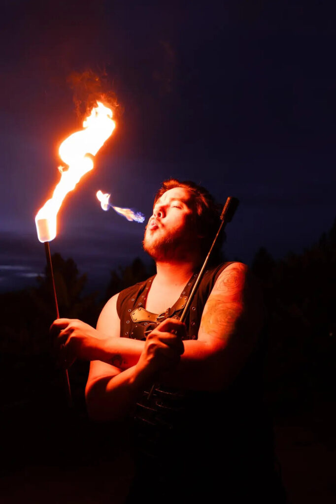 Our Performances: From the hypnotic swirl of flaming poi to the graceful movements of fire fans and the daring feats of fire breathing, Burn Works delivers electrifying performances that leave spectators spellbound. Whether gracing the stage of a local festival, illuminating the night at a private event, or enchanting audiences in a theatrical setting, our dynamic fire dancers infuse each performance with an unparalleled energy and spectacle.